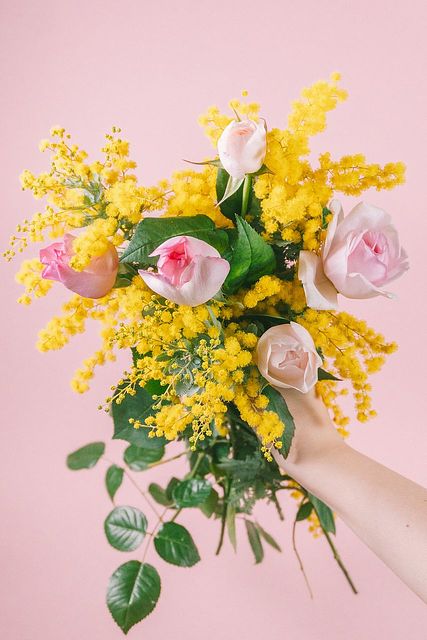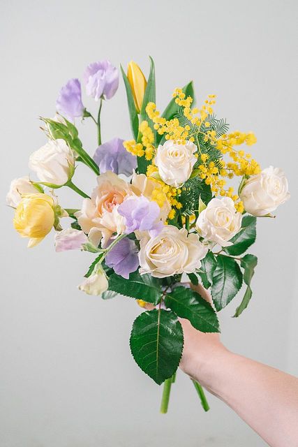 幸せを運ぶ「黄色とミモザ」のおまかせブーケ