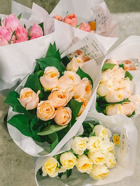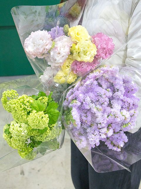 FLOWERのブーケは、市場で仕入れてすぐに販売。そして、花がたっぷりと水を吸ったタイミングで発送しています。新鮮な花をお楽しみください。