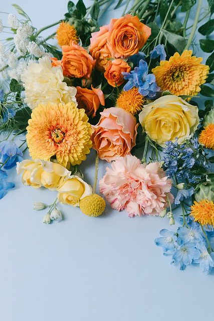 ビタミンカラーとブルーのおまかせブーケ