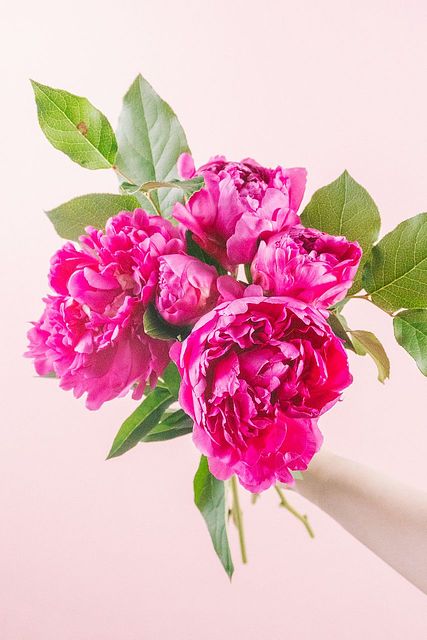 チェリーピンクの芍薬とレモンリーフ