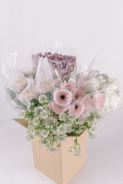 宅配便でご自宅までお届けします。箱を開けたらかわいいお花にうっとり。受け取ったら、なるべく早く水につけてあげましょう。