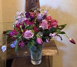 アメジストカラーの花束2つ分のボリュームに大満足です。お部屋が春の香りに満たされています。