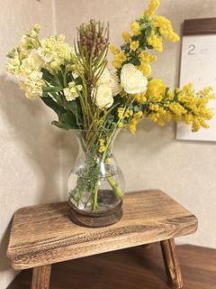 彩り、ボリューム共にとても満足です♪ 黄色いミモザがふわふわで他のお花達も 素敵でお部屋が明るくなりました。