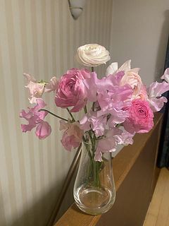 箱を開けたとたん、ふわっと優しい香りがしました 華やかで、甘いピンクブーケでテンションが上がります 繊細なお花ばかりでしたが、二重に保護されて、痛むことなく届きました お部屋がパッと明るくなりました