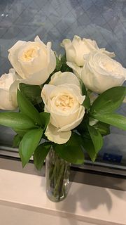とても香りも良く、真っ白なバラで素敵でした。 家にグリーンの葉物があったので組み合わせて飾ってみました。癒されます🥰