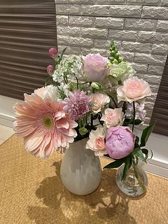 お花がもりもりでした 花瓶二つに分けて楽しんでます