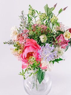 同じ時期に咲くトルコキキョウやバラと組み合わせると、一輪挿しでは出せない豪華で華やかな魅力を引き出すことができます。