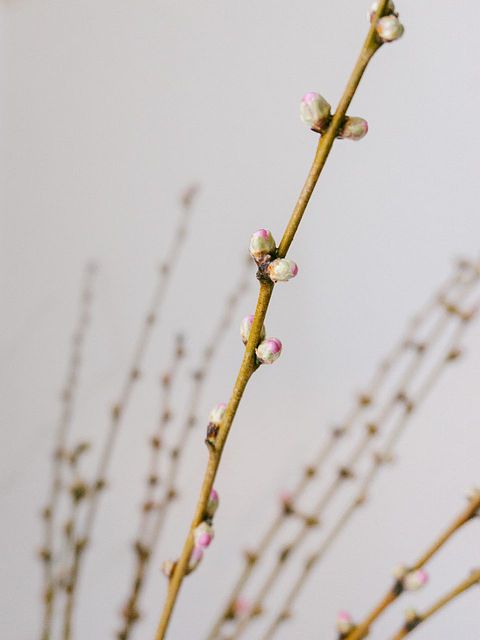 季節の枝もの、「桃の花」。繊細はお花のため、蕾の状態でみなさまの元へお届けしています。