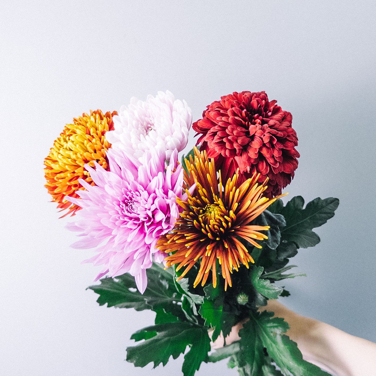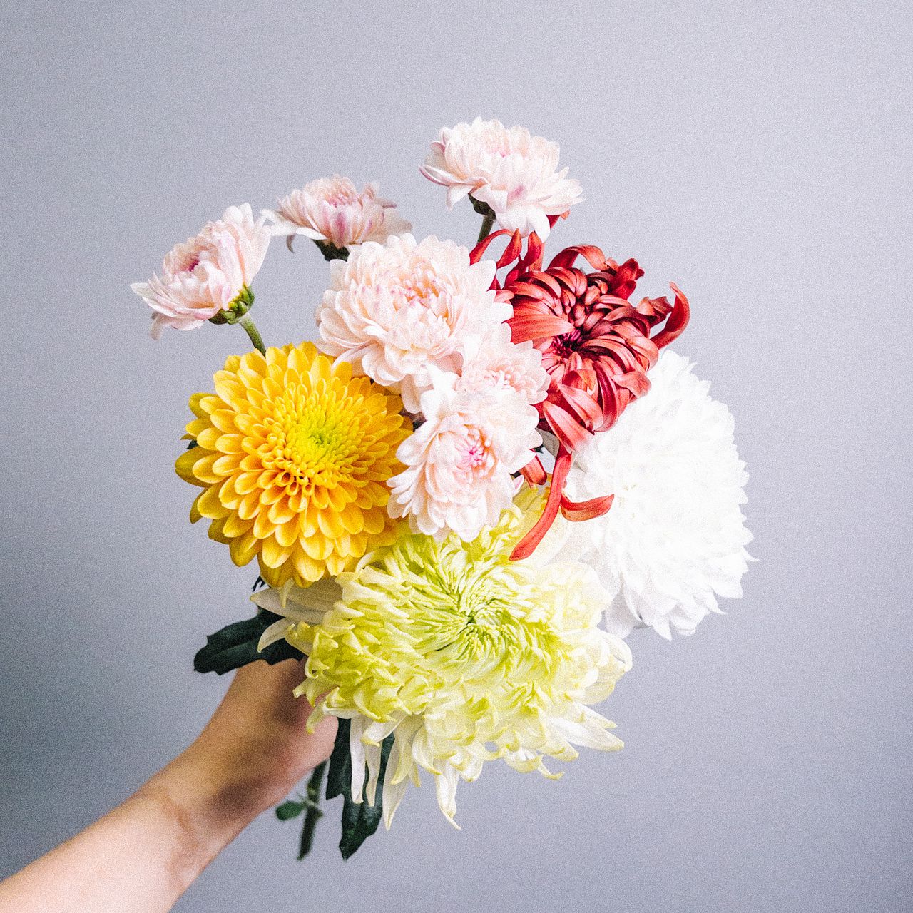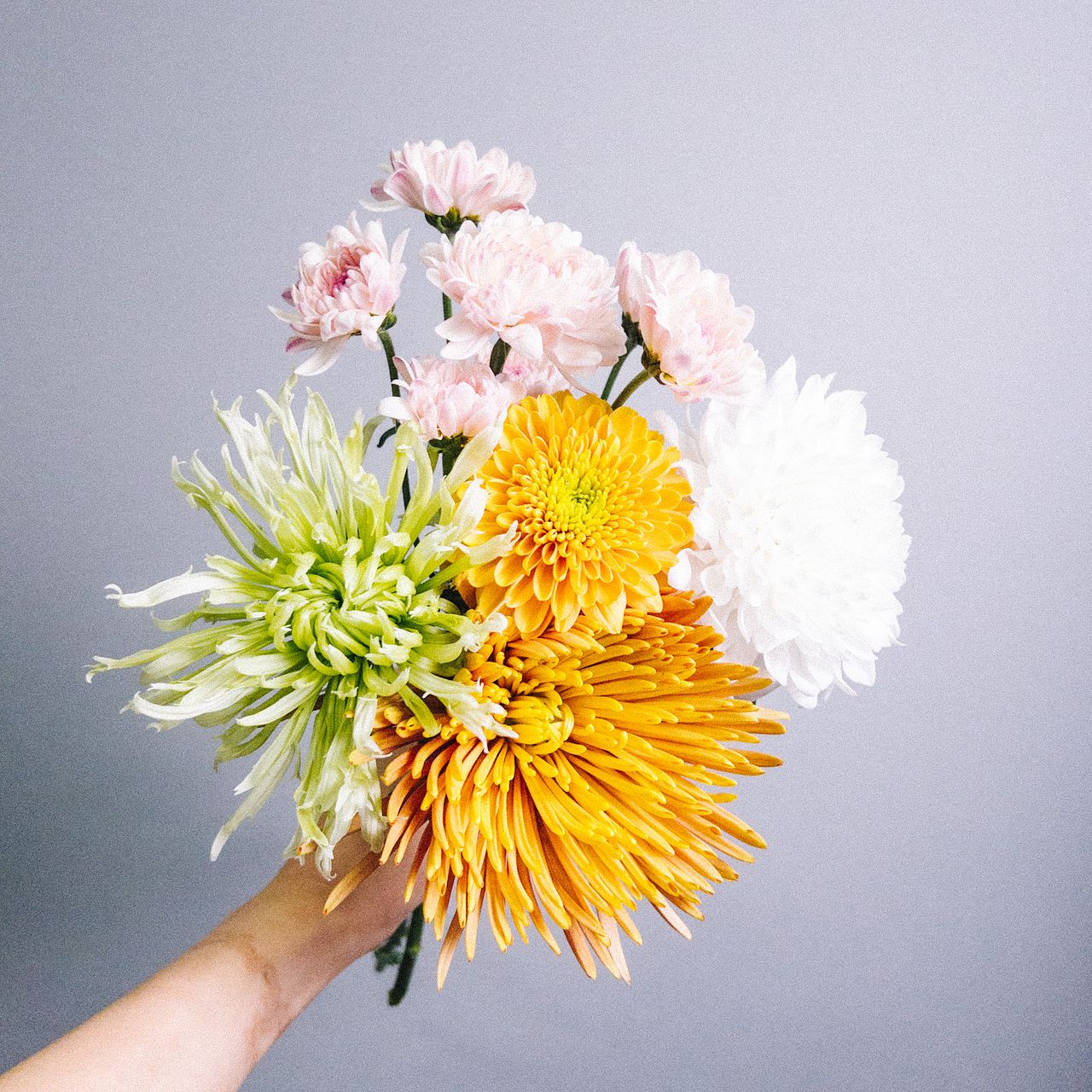 - 1輪咲きのマムは花首が折れやすいため、優しく扱って。