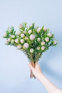 コロンとした見た目が可愛い!ネイティブフラワーのリューカデンドロン「ジェイドパール」をたっぷり束ねました。