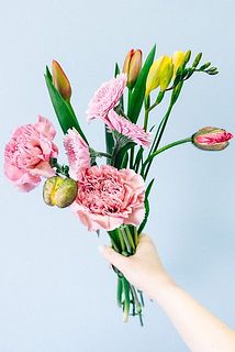 チューリップやフリージア、ポピーなど、春のお花を束ねました🌸