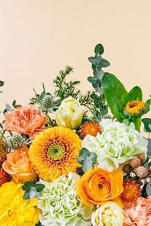 心が温かくなるオレンジ色やグリーンのお花を集めて🍊🌿
