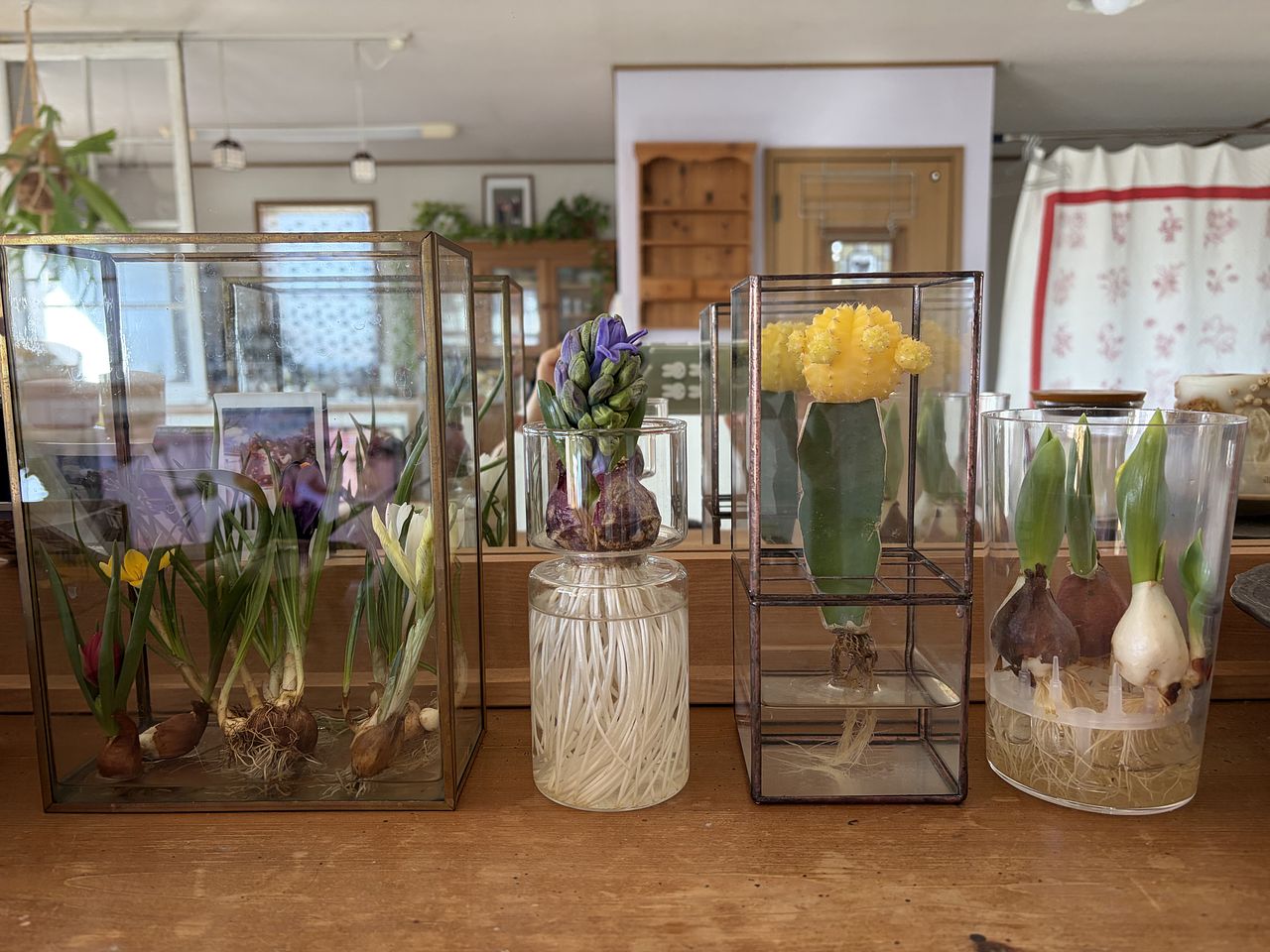 球根を2〜3個同じ容器に入れるのもおすすめ。お気に入りの組み合わせを見つけてみて。