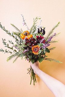 トウガラシ、パンプキン、花ナスなど個性的な実ものを束ねました。ちょっぴり刺激的なブーケが好きなあなたに🌶香りの良いローズマリーやセージなどのハーブもたっぷり入っています。ポンポン咲きのガーベラはもこもこでキュート。