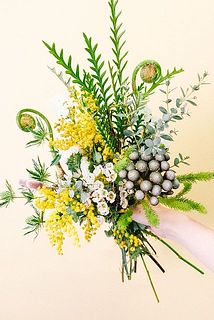 ミモザ / ゼンマイ / ワックスフラワー / エリンジウム / アイバンホー / ユーカリ / ネコヤナギ / ガルピニ