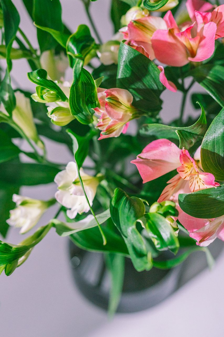- 茎先を1センチほどカットし、紙で包んで2〜3時間水につけてあげましょう。葉っぱは下に引っ張るように剥いてください(葉っぱを取ると花に水が届きます)。お花屋さんになった気分でお手入れしてみてくださいね。