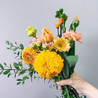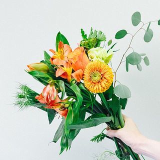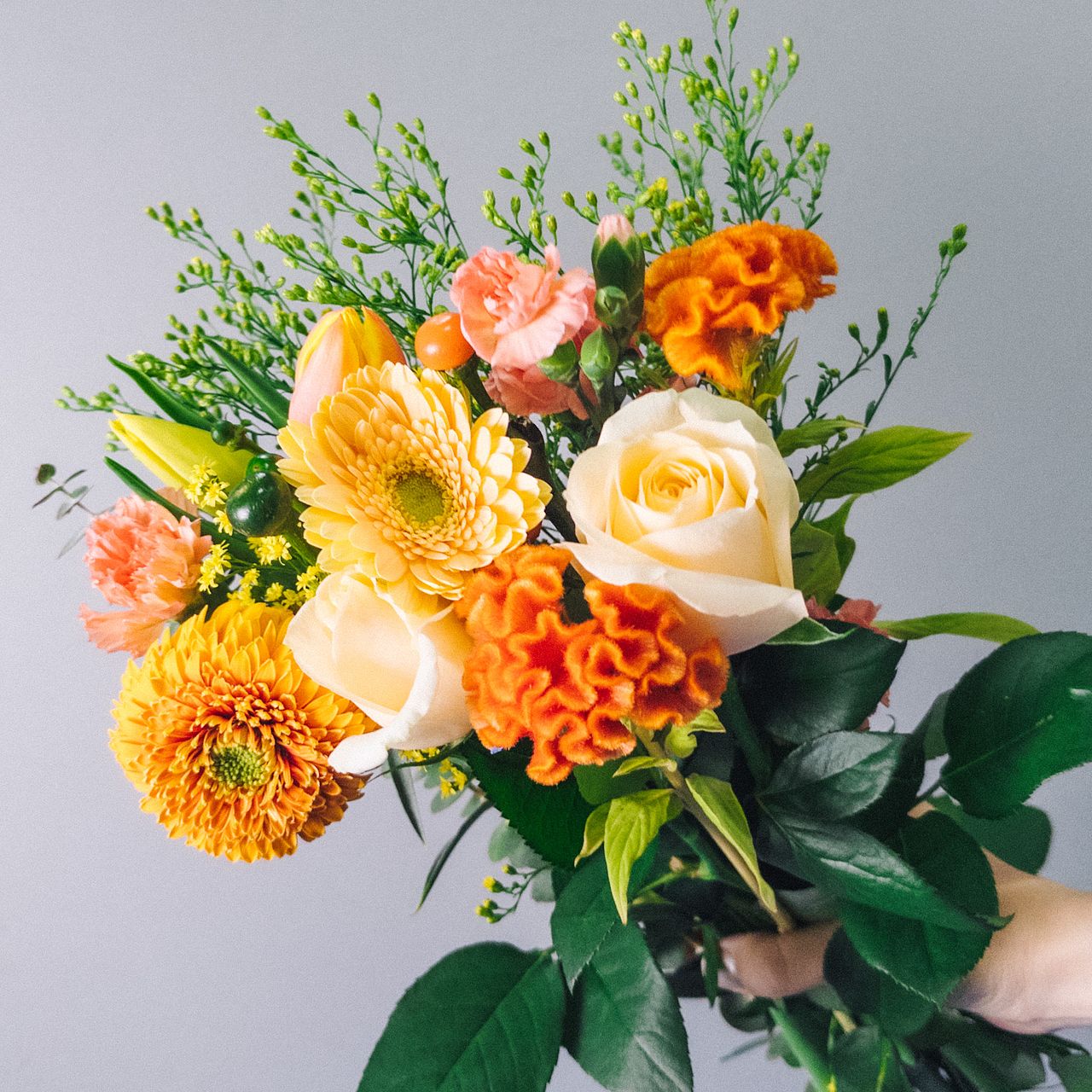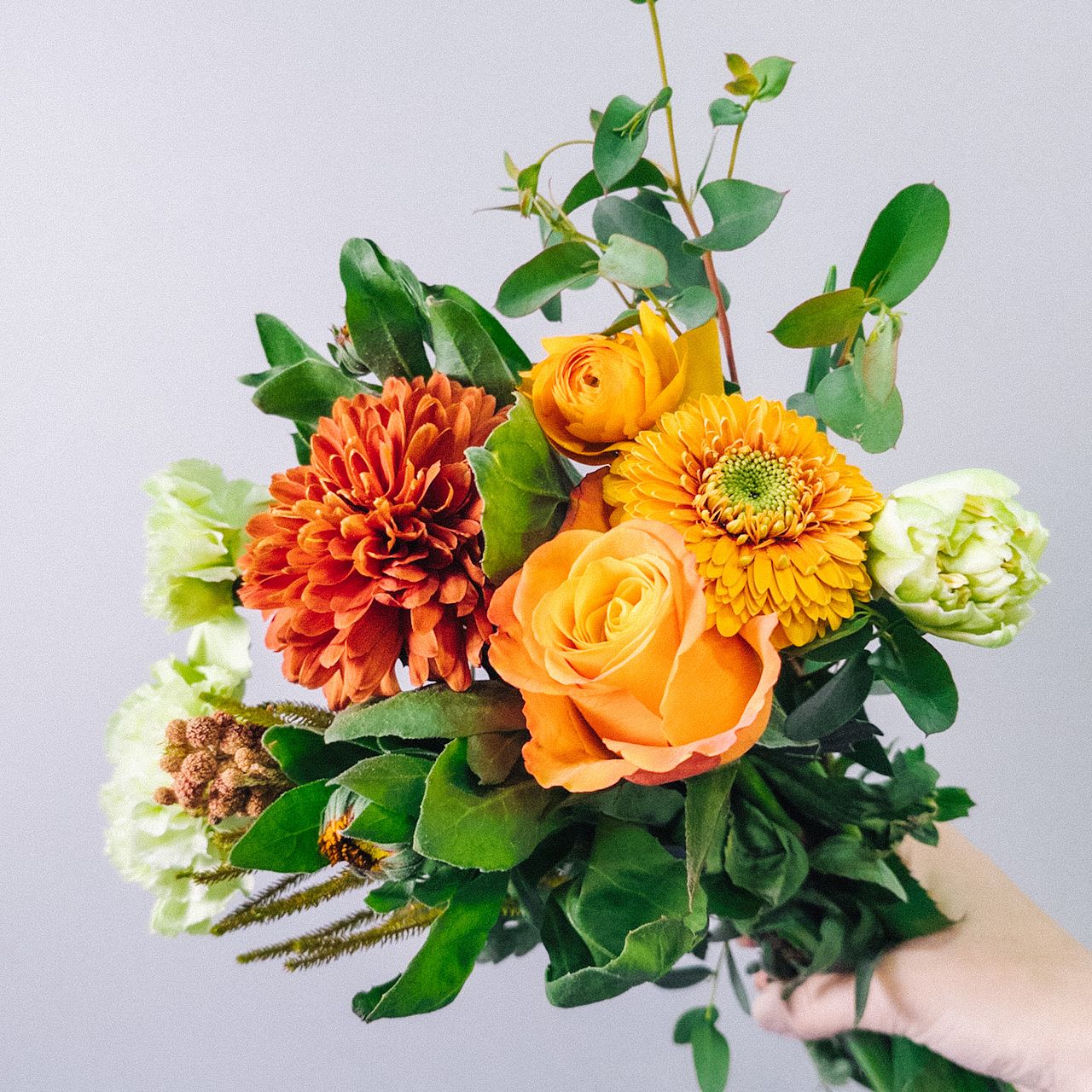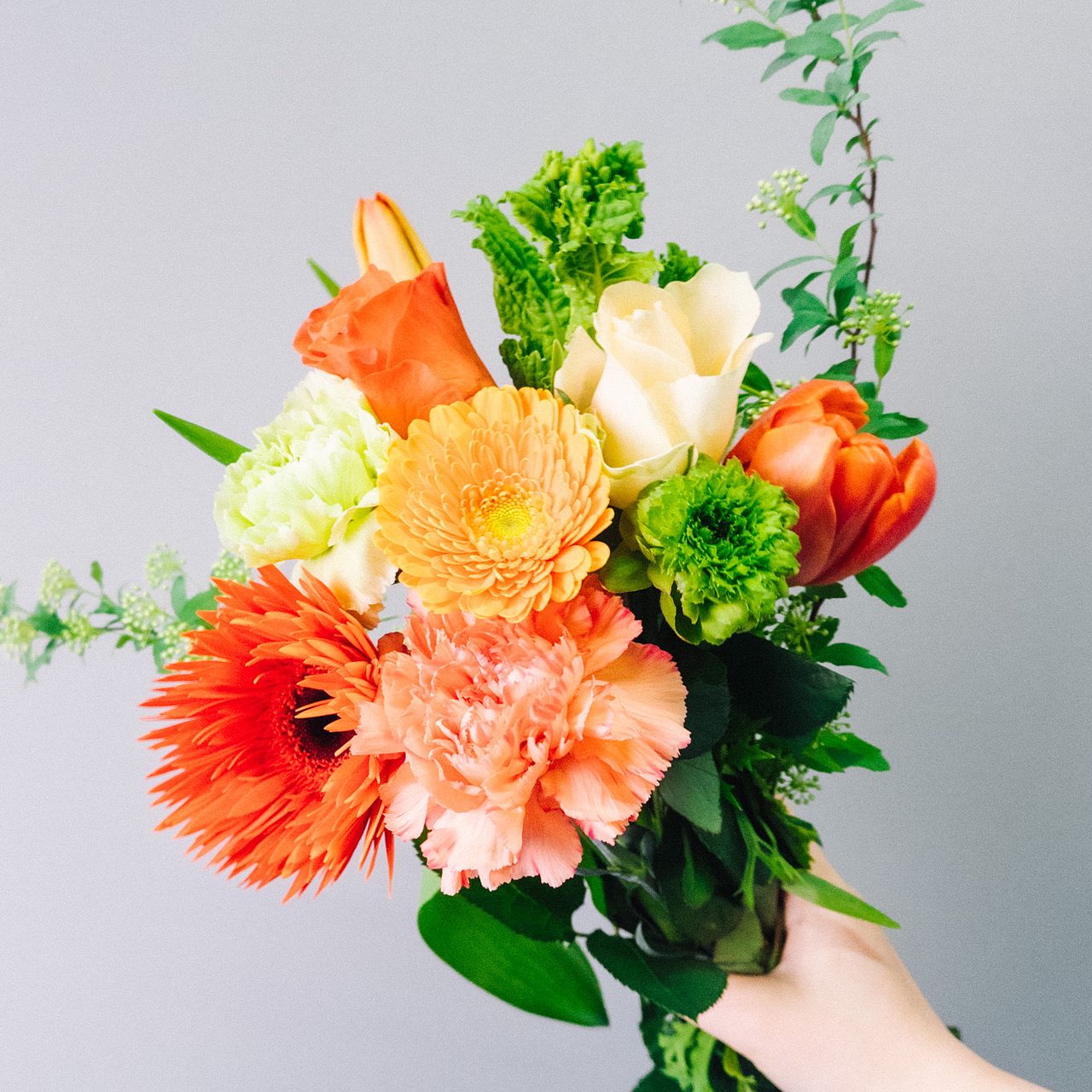 心が温かくなるオレンジ色やグリーンのお花を集めて🍊🌿