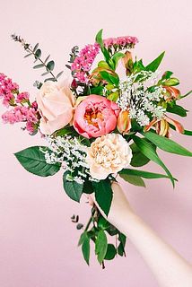 芍薬 / バラ / カーネーション / レースフラワー / アルストロメリア / スターチス / ユーカリ