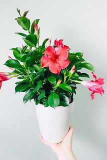 マンデビラの中ではつるが伸びにくく、コンパクトにまとまるのが特徴的。