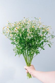 ふわふわゆれるマトリカリア「シングルペグモ」をたっぷりと束ねました。