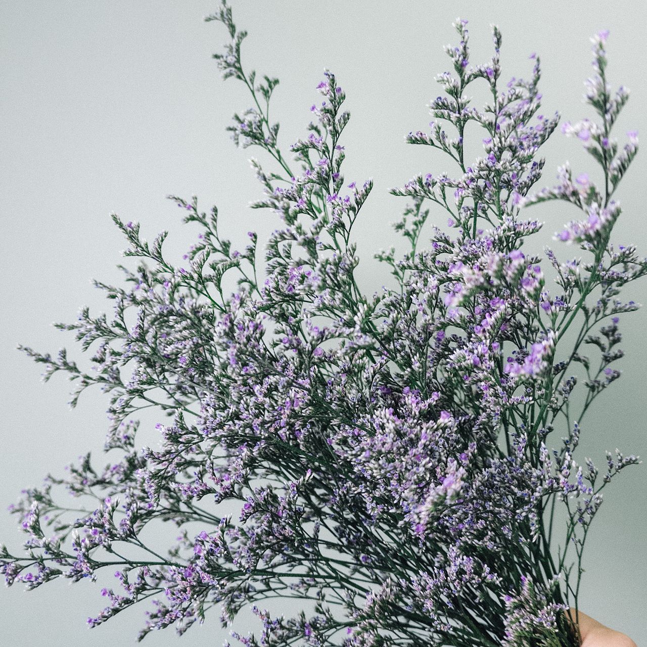 そのままドライにして飾ってみて!淡い紫色のリモニューム(ハイブリッドスターチス)「エバーライト」をたっぷりと束ねました🍇花のような部分、実はガクなんです👀中から小さい花が咲きます。