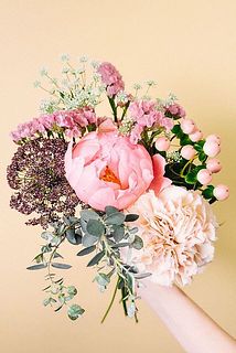 シャクヤク / カーネーション / ヒペリカム / スターチス / レースフラワー / ダウカス / ユーカリ
