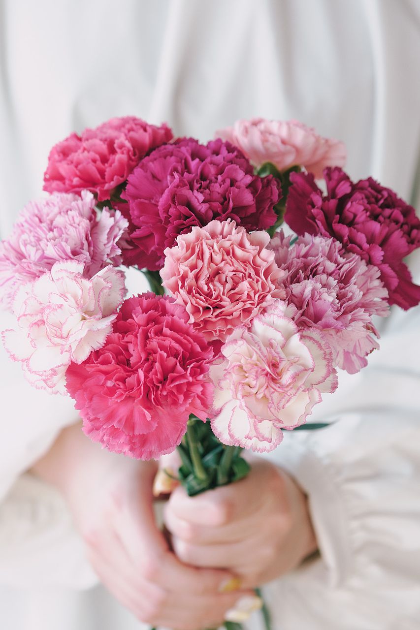 ラブリーなピンクのカーネーションの花言葉は「感謝」。かわいい雰囲気が好きなお母さんに。
