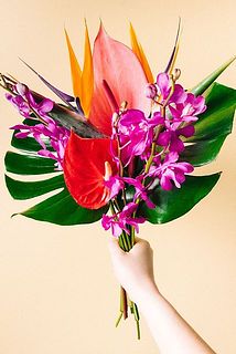 そんな季節にぴったりのお花は、ストレリチア(極楽鳥花)、モカラ、アンスリウムとカラフルでハッピーなブーケをぜひお部屋に迎えてみてはいかがでしょうか✨