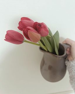 ぽってりと丸みのあるフォルムは、どこかアンティークのピッチャーのよう。お部屋に置くだけで素敵な雰囲気にしてくれます。持ち手があることで、水換えもしやすいデザイン。細部にこだわったそう。