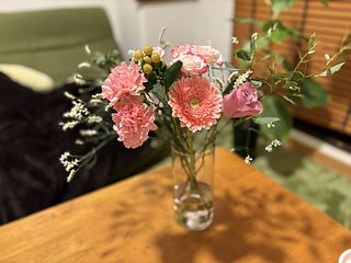今回はてんびん座のシンボルカラー、ピンクを束ねて♎️淡いピンクのバラや、今の時期だけの芍薬をたっぷりとセレクトしました。芍薬は2本お届け。
