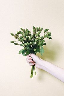 グリーンからロゼ、最後はブラックに色づきます。茎が短いブーケなので、小さめの花器にラフに飾ってみて。