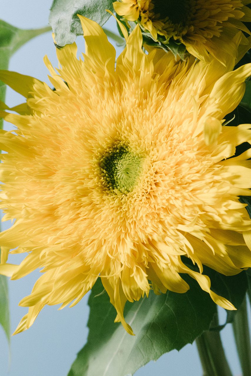 ※ひまわりは、下を向いているものがありますが品質に問題はありません。花元を紙で上を向くように巻いて水揚げをしてみると上をむくことも。