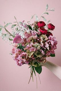 ピンクの紫陽花やころんとした形がキュートなスプレーバラ「ガーネットジェム」など旬なお花をたっぷり楽しんで💫