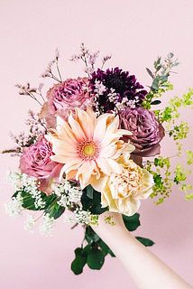 バラ / ガーベラ / スカビオサ / カーネーション / アルケミラロブスター / ユーカリ / ハイブリットスターチス / レースフラワー