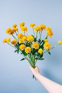 オレンジイエローの花がポップでかわいい🧡ヒメヒマワリをたっぷり束ねて。