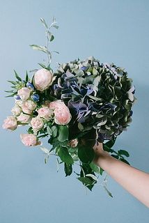 ふんわりピンクのバラ「スウィートフロー」を組み合わせて。季節のお花を珍しいカラーでまとめました。バラと紫陽花はしっかりとお手入れが必要。「お手入れ方法」を参考にしてみて💡