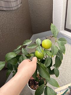 すでに可愛いグリーンの実が8つもついた予想以上に綺麗で全体のバランスも整ったレモンの木が届きました。別の鉢に植え替え11月中旬頃半分青いグリーンレモンともう数日置いた黄色いレモンを収穫できました。途中1つ実が落ちてしまいましたが4ヶ月間水やりをしながら可愛いレモンの木の成長を楽しめました。今年は実がたくさんなり、表年だったかと思います🍋