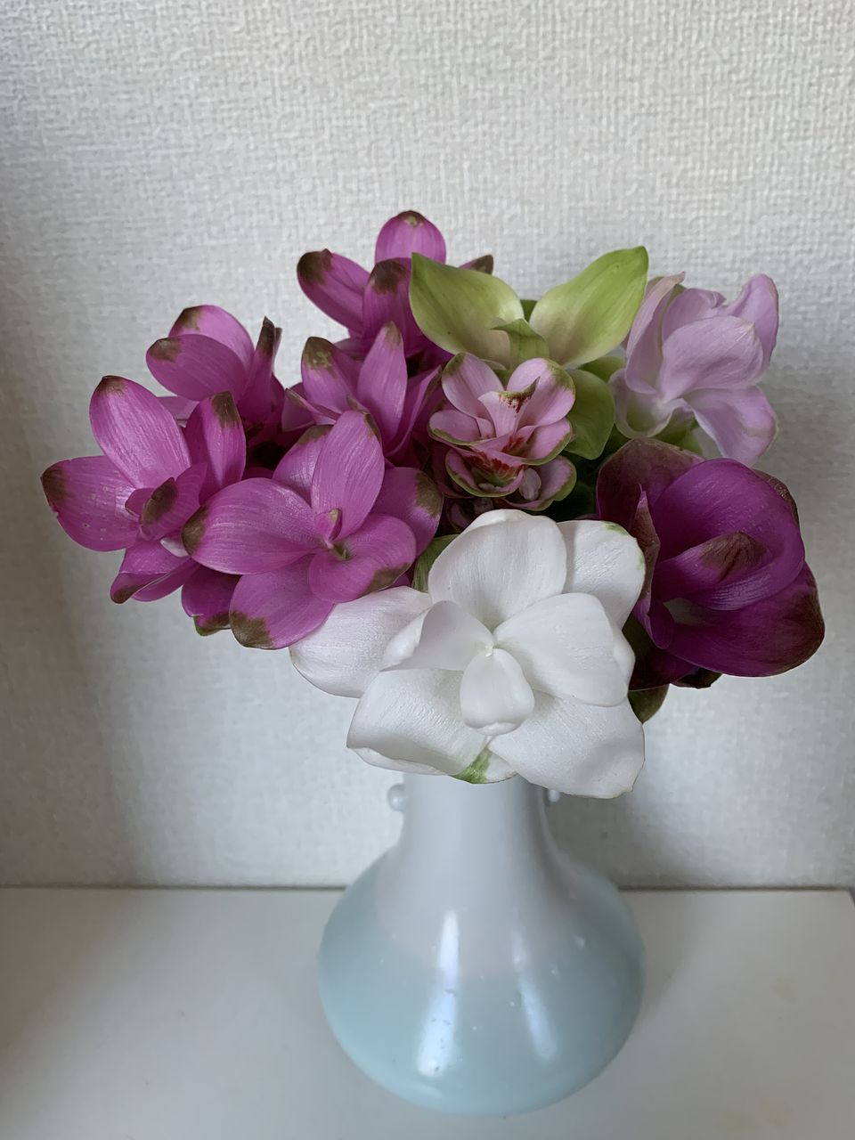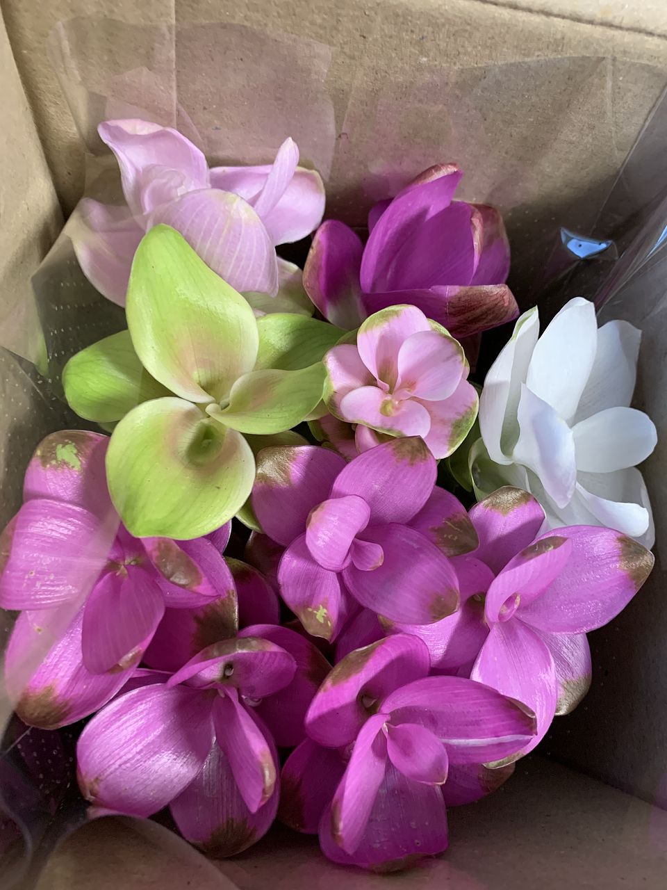 ハウスで大切に育てられたクルクマ。夏にしか出会えないお花です。