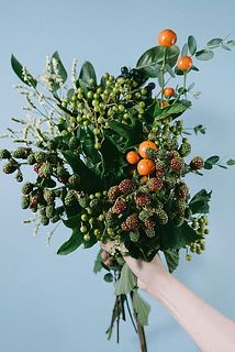 旬のブラックベリーをメインに、コニカルオレンジやアロニア、ビバーナムなどナチュラルな夏の実を集めました🫐様々なコロコロと丸い実たちの、可愛らしい姿を楽しんで。スターチスとユーカリを添えてお届けします🌿