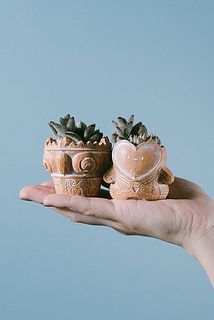 古墳から発掘してきたようなユニークな土器や土偶の形のポットに多肉植物2種の寄せ植え🪴
