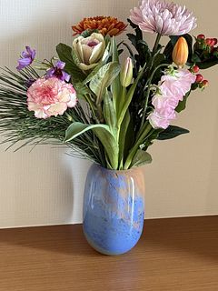 お花をぽんと入れるだけで、絵になってしまう。そんなフラワーベースです。