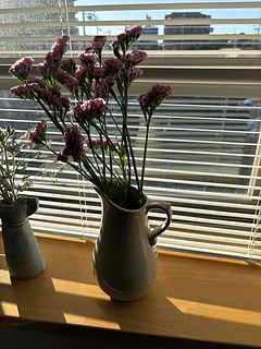 ぽってりと丸みのあるフォルムは、どこかアンティークのピッチャーのよう。お部屋に置くだけで素敵な雰囲気にしてくれます。持ち手があることで、水換えもしやすいデザイン。細部にこだわったそう。
