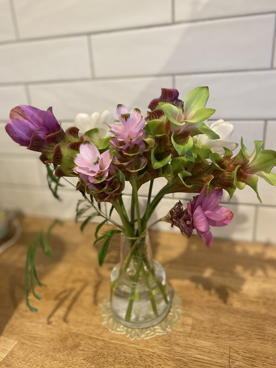 ハウスで大切に育てられたクルクマ。夏にしか出会えないお花です。