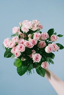 薄いピンク色がアクセント!スプレーバラ「ストロベリーワルツ」を束ねて。