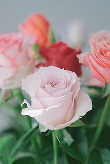 赤やオレンジのバラが入ることも。