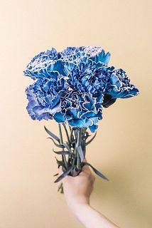 デニムのような色の染めカーネーションを束ねて👖シックな雰囲気が好きなあなたへ。持ちもよく、長く楽しめます。