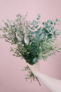 ユーカリやワックスフラワー、ふわふわのセロシアを組み合わせて。
