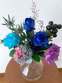 珍しいブルー系のお花をたっぷりと束ねて💐