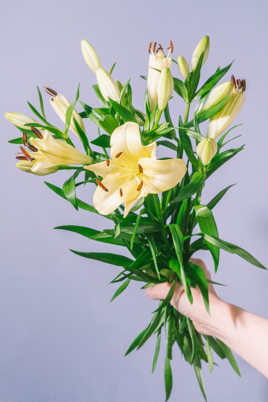 まず茎先をカットし、茎の7〜8割が浸かるイメージで深いお水に数時間つけてあげて。水圧で花に水が届きます。