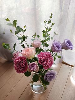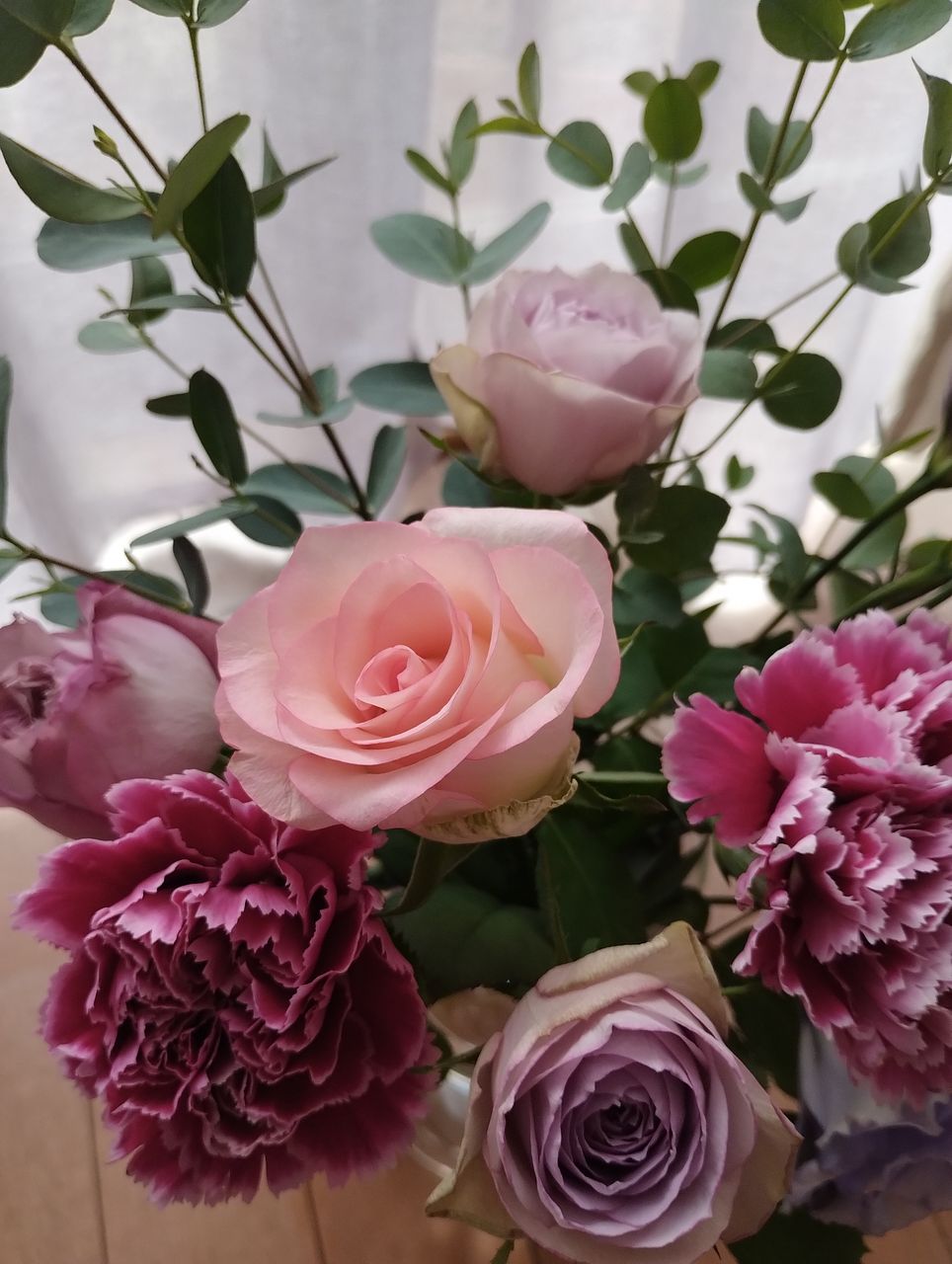 少し潰れ気味の花もありましたが、全体の色合いがとても可愛らしく素敵です。 届いてから窓際で水に浸けているとほのかにお花のいい匂いが漂って幸せでした𖧷⁺.˖*